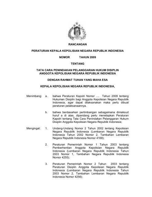 Rancangan Peraturan Kepala Kepolisian Negara Republik Ppid Polri